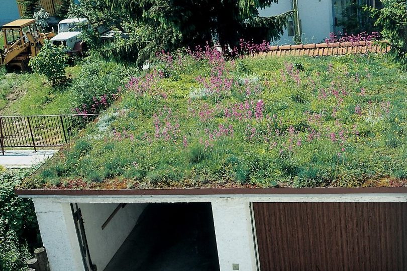 Durch die Begrünung wird die darunterliegende Dachkonstruktion geschont.